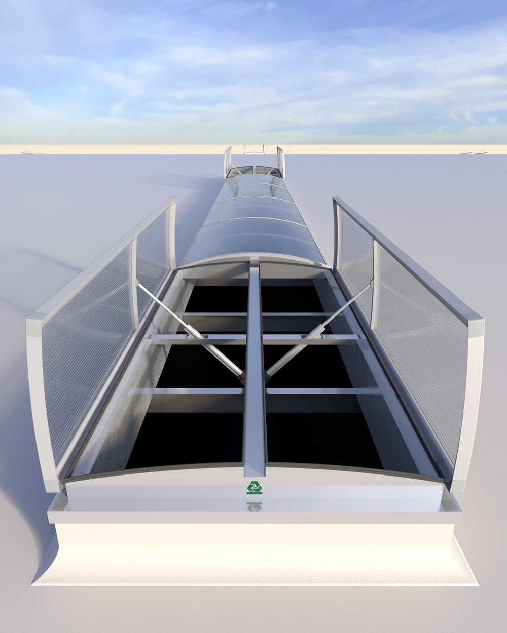圓拱型上開式消防排煙天窗適用于平時(shí)以采光為主,必要時(shí)才開啟的建筑,其窗扇向上開啟,一般開啟角度為30°45°。其規(guī)格尺寸相對(duì)較小,喉口一般不超過(guò)3000mm。圓拱型上開式消防排煙天窗的頂部為圓拱形,夏季有利于排水,冬季不容易積雪。自身具有較好的自潔性。雨雪可沖刷其表面浮塵,有利于電動(dòng)采光排煙天窗保持良好的采光性能。